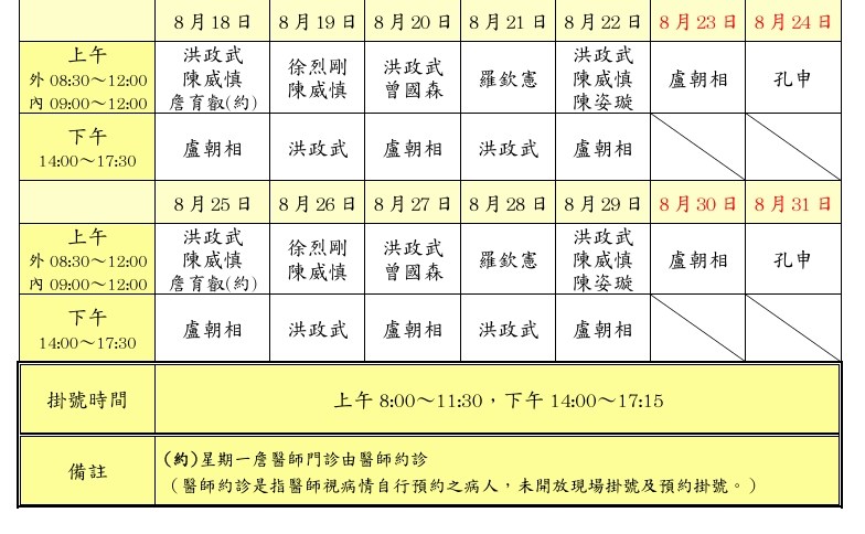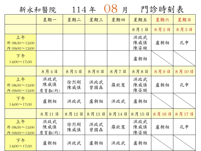 2025年08月門診時該表